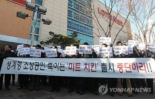 최근 대기업과 중소기업 간 동반성장이 사회적 화두로 제시된 상황에서 통큰 치킨으로 타격을 입은 치킨 전문점 업주들의 반대 시위와 이들의 공정거래위원회 제소 방침 등 반발이 거세지자 1주일 만에 판매를 접은 것이다.