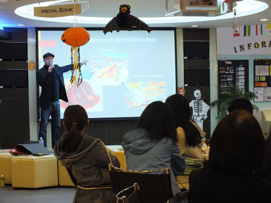 지난 10월 30일 독일어문학과에서 주최한 ‘제56회 Stammtisch Deutsch(독일어 단골방)’이 인터내셔널 라운지에서 열렸다. 이날 행사는 ‘Traditionelleund moderne Feste in Deutschland(독일의 전통적인 축제와 현대의 축제)’를 주제로 진행됐다.