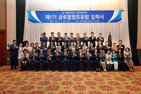 제1기 입학식은 대구시 기업 CEO, 고위공직자 등 36명의 입학생이 참석한 가운데 진행됐다. ‘글로벌창조포럼’ 과정은 대구지역 미래창조도시 설립에 앞서 최고관리자들의 창조적 리더십 개발 및 역할 재정립을 위해 정책대학원의 비학위교육과정으로 개설됐다. 입학생들은 지난 7일부터 시작해 28주 동안 창조미래융합과 조직발전, CEO의 경영철학, 안보 및 명사초청 특강 등의 수업을 받게 된다.