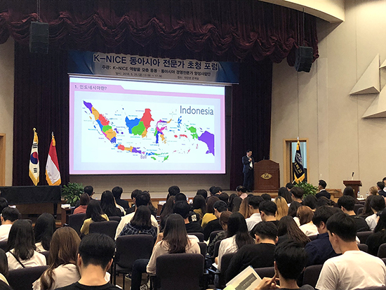지난 5월 25일 의양관 운제실에서 ‘동아시아 전문가 초청포럼’이 진행됐다. 이날 포럼에는 이중희 부총장과 신진교(K-NICE사업단) 단장을 비롯한 교수 및 학생들이 참석한 가운데 ‘인도네시아에서의 기업가 정신과 창업’을 주제로 포럼이 진행됐다.