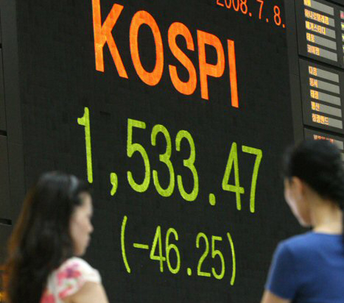 8일 유가증권시장의 코스피지수는 전날보다 46.25포인트(2.93%) 내린 1,533.47로 장을 마감했다.