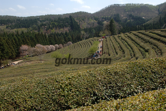 그래도 직접 눈으로 보는 것에는 비할 바가 못 됩니다. 눈앞에 펼쳐진 푸른 차밭은 마치 거대한 산을 연상시킬 정도로 웅장합니다. 그도 그럴 것이 350ha에 이르고 차밭에는 모두 588만여 그루의 차나무가 심어져 있습니다.