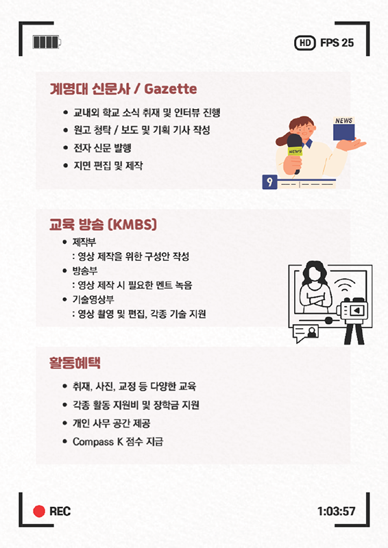 나. 모집부서: 계명대신문(국자신문), The Keimyung Gazette(영자신문), KMBS(교육방송)