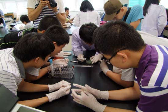 미생물 실험에 참여한 이수현(와룡중·2) 씨는 “미생물을 직접 현미경으로 보니까 작은 물방울처럼 생겼어요”라면서 신기해했다.