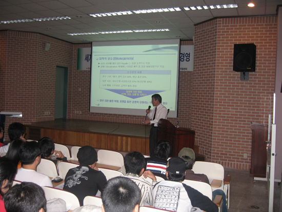 이번 강연은 ‘지역경제통합과 지속가능경영’이란 주제로 대구·경북의 경제현황과 앞으로의 전망에 대해 알아보고 지역 환경의식을 고취 시키기 위해 열렸다.