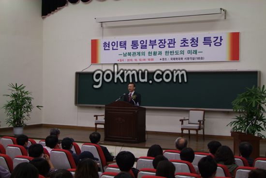 지난 10월 12일, 우리학교 대외협력처 주최로 ‘현인택 통일부장관 초청특강’이 스미스관 시청각실에서 열렸다.
