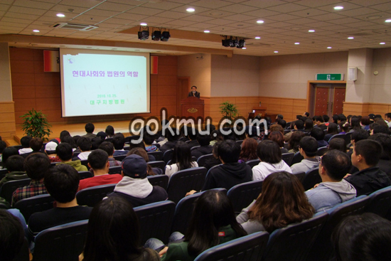 지난 10월 25일 법경대학 주최로 대구지방법원장 초청특강이 ‘현대사회와 법원의 역할’이란 주제로 행소박물관 시청각실에서 열렸다.