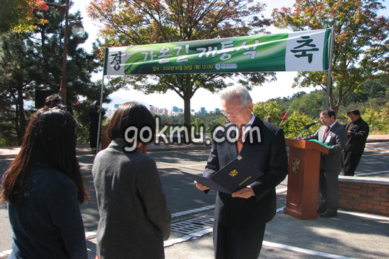 이날 최우수상을 수상한 한미진(국제통상학·3) 씨는 “‘가온’이란 가운데라는 순수 우리말로이 길이 우리학교의 중심이 됐으면 좋겠다는 마음으로 정하게 됐다”면서 수상소감을 밝혔다.