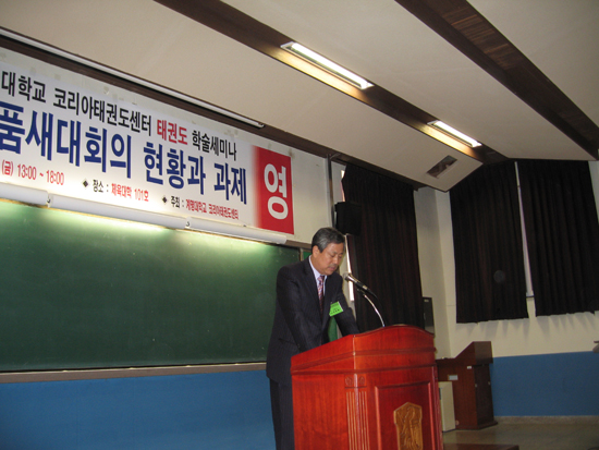 이번 세미나는 김철오(태권도학·초빙부교수)교수, 송형석 코리아태권도센터 소장, 이종관 국기원 교육부장, 김기만 체육강사가 ‘태권도 품새의 현황과 과제’, ‘품새경기의 발전을 위한 품새의 새로운 개념정립과 기술이론 모색’, ‘태권도 품새대회 채점기준의 문제점과 개선방향’ 등을 논제로 진행했다.