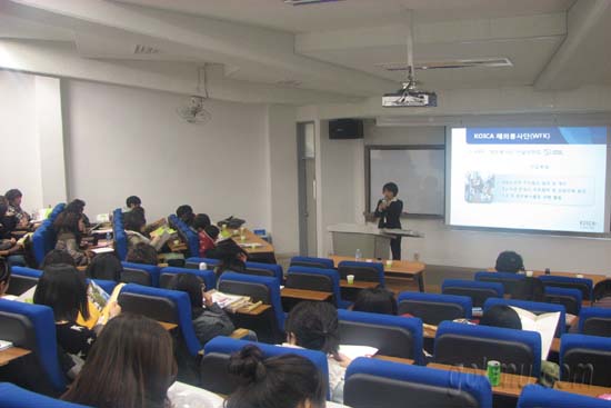 이날 연사로 초청된 한국국제협력단 해외봉사협력팀 김은미 선생은 한국국제협력단에 대한 전반적인 소개와 학생들이 취업할 수 있는 방법 등을 설명했다.