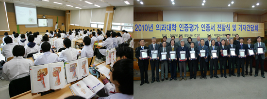 한국의학교육평가원(이하 의평원)은 2010년도(2주기 4차년도) 인증평가를 전국 17개 의과대학 대상으로 실시했다. 그 결과 우리학교는 ‘의과대학 인증평가’에서 의평원에서 설정한 평가기준을 충족해 최고수준인 ‘5년 인증기간’ 평가 결과를 받았다.