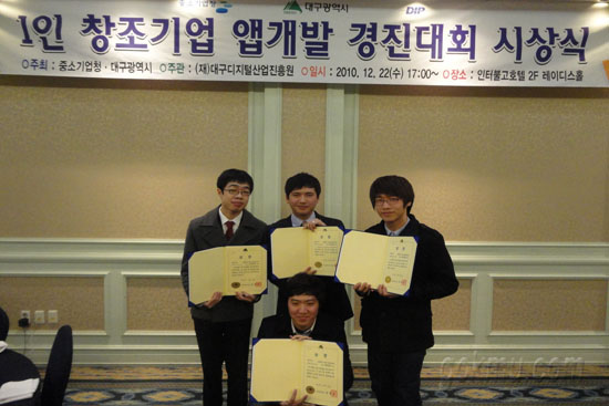 최근 중소기업청이 주최한 ‘공공DB를 활용한 1인 창조기업 앱개발 경진대회(이하 앱개발 경진대회)’에서 우리학교 임준호(게임모바일콘텐츠학·4) 씨, 손대연(게임모바일콘텐츠학·4) 씨, 김성환(게임모바일콘텐츠학·2) 씨, 채정윤(게임모바일콘텐츠학·2) 씨로 구성된 ‘Smarture’팀이 최우수상을 수상했다. 이에 임준호 씨와 손대연 씨를 만나 이야기를 나눠봤다.