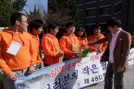 모금운동을 펼치고 있는 총학생회 회장 박찬근(호텔관광학·4) 씨는 “학우분들이 많은 관심을 가지고 모금에 동참해 주신데 감사드린다”며, “앞으로 남은 며칠 동안 일본 대지진 피해자들을 위해서라도 많은 참여와 관심 부탁드린다”고 전했다.