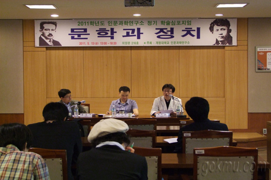 지난 13일, 우리학교 인문과학연구소가 주최하는 ‘2011년도 인문과학연구소 학술심포지엄’이 ‘문학과 정치’라는 주제로 의양관 216호에서 열렸다. 이날 학술심포지엄은 ‘파시즘과 문학의 정치’, ‘숭고와 은유’, ‘한국문학의 정치적 무의식’ 등의 소주제에 대한 학술발표와 종합토론으로 진행됐다.