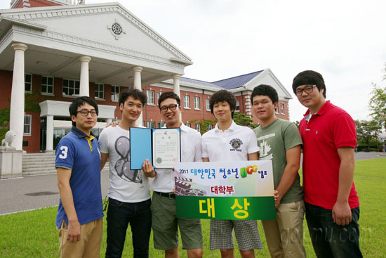 지난 7월 22일부터 24일 총 3일간 2011대구세계육상선수권대회 성공개최를 기원하기 위해 대구광역시가 주최하고 여성가족부가 후원한 ‘2011대한민국 청소년 UCC캠프’가 열렸다. 우리학교 도언석(언론영상학·4), 김성우(언론영상학·4), 김용근(언론영상학·4), 이병수(언론영상학·4), 허설(언론영상학·4), 박거태(언론영상학·3) 씨로 구성된 리더스팀이 대상을 차지했다. 이에 도언석 씨를 만나 UCC캠프 출품작에 대해 이야기를 나눠봤다.