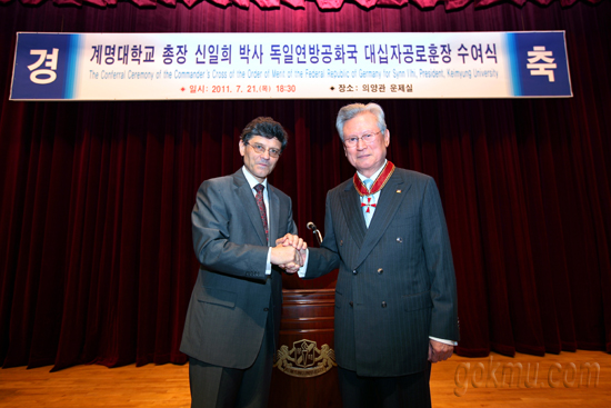 지난 7월 21일 의양관 운제실에서 신일희 총장 독일연방공화국 대십자공로훈장 수여식을 개최했다.