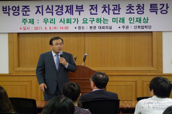 지난 8일 산학협력단 주관의 박영준 전 지식경제부 차관 초청 특강이 ‘우리 사회가 요구하는 미래 인재상’이라는 주제로 본관 대회의실에서 열렸다.
