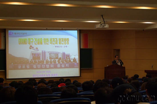 지난 16일 제 155회 계명경영특강 및 CEO포럼이 의양관 118호에서 열렸다. 이번 포럼은 윤성식(대구도시공사·사장) 씨가 연사로 초청돼 ‘GREAT 대구건설을 위한 방향과 비전’이라는 주제로 강연을 진행했다.