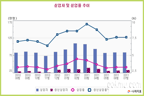 통계청이 지난 7월에 발표한 고용동향을 살펴보면, 청년실업률은 7.6%로 지난 시기와 비할 때 큰 차이가 없는 정도였다. 해마다 졸업생들이 쏟아지는 가운데 누적된 실업인구를 고려하면 체감 실업률에 비해 매우 낮은 수치다. 그렇다면 이 실업률 산출은 어떻게 나온 것일까?