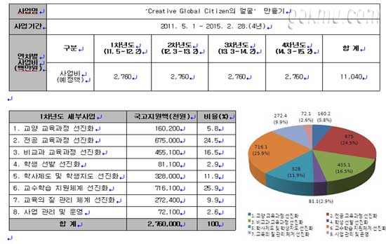 교육역량강화 지원 사업은 학부 단위의 교육 역량을 강화하기 위한 교육과학기술부의 재정지원 사업을 말합니다. 올해는 신청서를 제출한 165개 대학 가운데 80곳이 지원 대상으로 선정되었고, 우리 대학교는 2년 연속 선정되었습니다.
