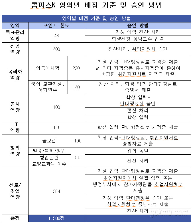 다. 영역별, 단대별, 계열별, 학년별로 다양한 포인트 관련 이벤트 실시