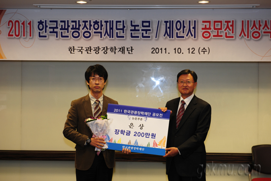 우리학교 엄완용(관광경영학·박사과정) 씨가 ‘2011년 한국관광장학재단 논문 및 제안서 공모전’ 시상식에서 은상을 수상했다. 이에 엄완용 씨를 만나 수상소감을 들어봤다.