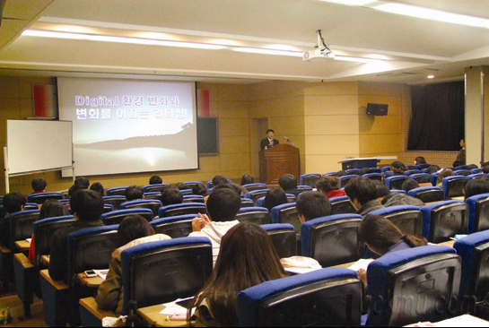 학생들에게 안승준 씨는 “하드웨어에서 소프트웨어로 권력이 이동했듯이 무형의 자산이 세상을 지배한다”며 “기업환경 또한 아날로그에서 디지털로 변화하기에 앞으로 기업에서는 창의력과 도전정신, 통찰력을 가진 인재를 선호할 것이다”고 말했다.