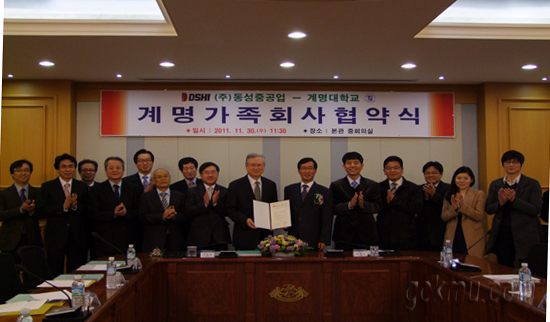 지난 11월 30일 우리학교와 (주)동성중공업의 계명가족회사 협약식(MOU)이 본관 중회의실에서 열렸다.