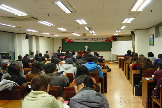 1일에는 2011 중등 임용 3차 시험의 출제위원인 이혜정(경북대학교 사범대학 부설고등학교 교사 겸 사범대 교육학 겸임교수) 교사가 연사로 초청돼 수업시연 특강을 진행했다. 이혜정 교사는 “수업안에는 수업목표와 주요 수업절차, 학습내용 등이 포함되어야 한다”며 수업 안의 구성과 형식에 대해 설명했다.