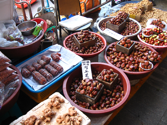 차례 상이라고 하면 가장 먼저 떠오르는 송편. 햅쌀로 만들면 맛이 새롭고 기름기가 있어 더욱 맛있는 떡이 된다. 송편 속에는 콩, 팥, 밤, 대추 등을 넣는데, 모두 햇것으로 한다.