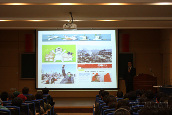 이날 연사로 초청된 유구현(우리은행·대구경북영업본부장)씨는 ‘Find a way, or make one’이란 주제로 금융기관의 정보수집과 문제해결 방안, 우리나라 현재 경제상황에 대해 현장 경험을 토대로 설명했으며, 학생들에게 자신만의 노력과 성실성으로 자신의 이력을 만들어 나갈 것을 당부했다.