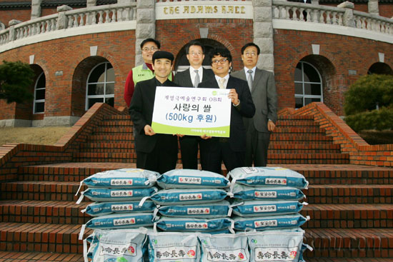 지난 7일, 우리학교 아담스채플에서 계명극예술연구회 차상웅 대표는 임경수 교목실장, 기아대책본부 대구지부 관계자 등이 참석한 가운데 기아대책본부 대구지부에 이웃돕기를 위한 쌀 500kg을 기증했다.