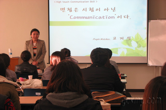 취업지원처는 지난 13일 취업소양교육 커뮤니케이션 과정을 개설했다. 5시부터 3시간 동안 이어진 강좌는 3~4학년을 대상으로 고지성(대구서비스교육센터·본부장) 씨가 대인관계 향상을 위한 커뮤니케이션 스킬, 자신의 의견을 정확하게 전달하는 방법 등을 강의했다.