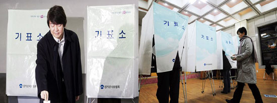흰색 투표용지는 지역에서 출마한 후보자에게 한표, 연두색 투표용지는 비례대표 국회의원을 뽑기 위해 ‘정당’에 한표