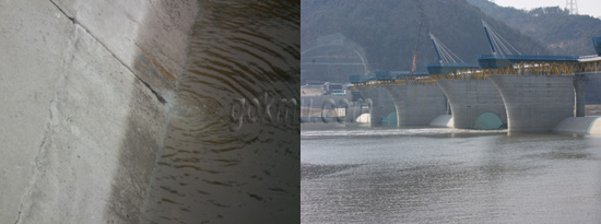 또한 “이와 같은 누수현상은 아마도 낙동강에 들어선 8개 보는 보가 아니라 댐인데 그 설계를 보의 기준으로 했기 때문”이라는 박창근 단장의 설명이 설득력이 있는 것 같다. 그리고 무엇보다 2년 안에 완공이라는 속도전으로, 그것도 추운 겨울철에도 콘크리트 타설을 강행하면서 공사를 벌인 것 또한 심각한 균열의 주된 원인 중 하나일 것이다.