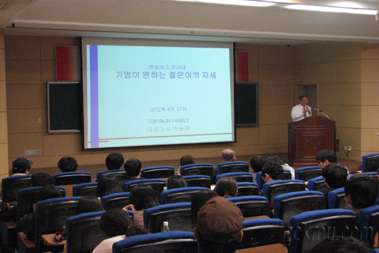 박용해 탑런 패밀리 대표이사는‘변화와 도전, 시대의 기업이 원하는 젊은이의 자세’란 주제로 발표하면서 “물질적인 보상보다 인정과 성취의 보람을 느껴야한다. 그리고 자기가 하는 일에 대해서는 남으로부터 최고의 인정을 받아야 한다”고 전했다.