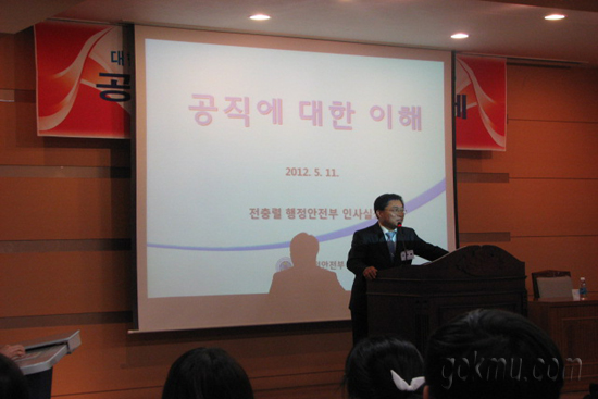 전충렬 행정안전부 인사실장은 ‘공직자의비전과 과제’란 주제로 특별 세미나를 진행했으며, 공무원이 되고자 하는 학생들을 위해 공무원의 직업적인 특징과 공무원이 되기 위한 방법을 설명하며 “공무원은 공익과 국민 전체를 위해 봉사를 하는 직업이므로 금전적인 보상은 적을 수도 있다. 그러나 명예는 얻을 수 있다”고 말하며 “금전적인 욕심없이 명예로운 삶을 살고 싶다면 공무원을 추천한다”고 말했다.