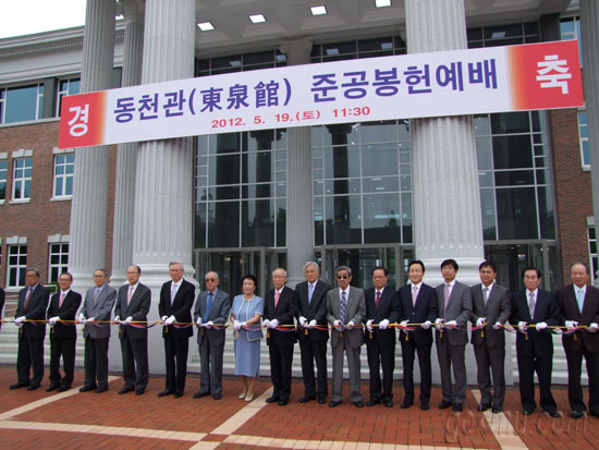 대학원(동천관)이 지난 18일 신축공사를 완료하고 19일 준공 봉헌 예배(이하 예배)를 가졌다. 이번 예배는 신일희 총장의 봉헌 및 명명사와 감사패 전달, 정순모 이사장의 인사로 진행됐다.