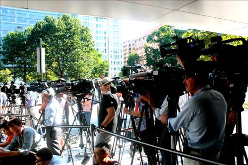 방송사 카메라맨과 사진기자들이 좋은 자리를 잡으려 1시간 전부터 진을 치기도 했다.
