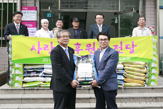 우리학교 동산의료원은 지난 6월 11일 달서구 신당동사무소에서 새병원 기공식에서 후원받은 쌀화환을 어려운 이웃에게 전달하는 사랑의 후원품 전달식을 가졌다.
