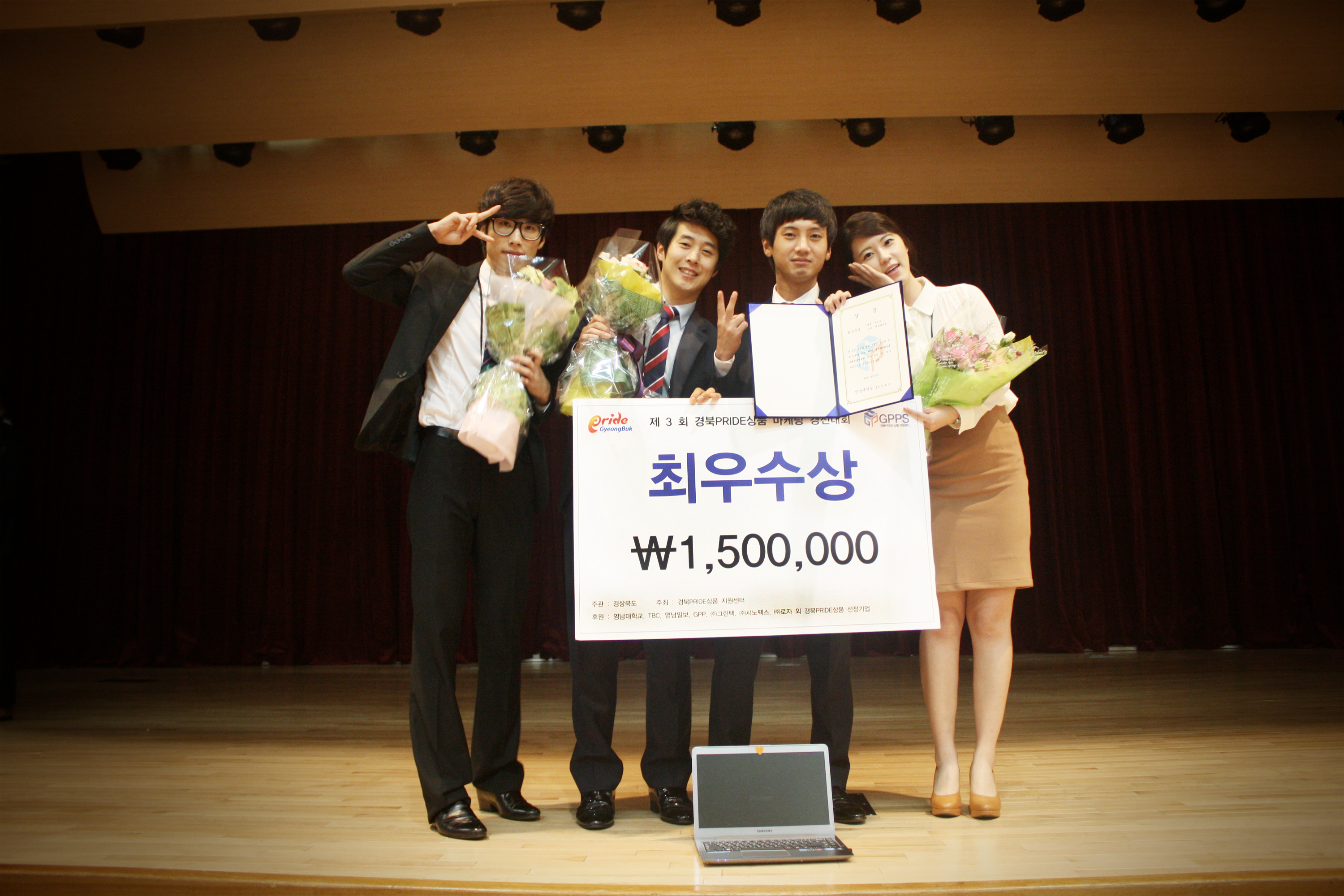 지난 5일, 우리학교 공모전 동아리 Keimyung Cunsulting Group(이하 KCG)팀이 경상북도가 주최하는 제3회 경북PRIDE상품 마케팅경진대회에서 최우수상을 수상했다 이에 팀원 장병목(식품가공학·4) 씨, 이문수(미국학·4) 씨, 우정은(언론영상학·4) 씨, 김준섭(경영학·2) 씨를 만나 수상과정에 대한 이야기를 들어봤다.