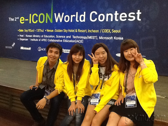 교육과학기술부와 한국 마이크로 소프트가 주최하고 APEC국제교육협력원이 주관하는 The 2nd e-ICON World Contest입니다. 이 대회에서는 이러닝 분야 국내외 우수 인재들에게 국제 협력과 국제화 역량강화 기회를 제공하기 위해 개최되어 국내 학생 두 명과 해외학생 2명이 팀을 이루어서 ICT를 활용한 교수학습콘텐츠를 개발하는 방식으로 진행되었습니다. 교육학과 엄우용교수님의 소개로 이 대회에 참가하게 되었습니다. 저희 팀은 저와 영어교육학과에 재학 중인 정난희 학우와 태국의 두 학생과 함께 팀을 이루었습니다.