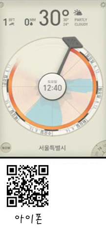 또한 특이한 점이 하나 있는데 그 것은 바로 ‘시간바늘’입니다. ‘시간바늘’을 움직이면 해당 시간에 대한 날씨 정보를 표현해주는 데요. 간단한 동작을 통해서 이해하기 쉽게 날씨 정보를 표현해주고 있습니다.