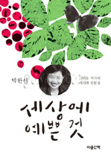 ● 세상에 예쁜 것 / 박완서, 마음산책.2012우리의 곁을 떠난 그리운 작가 박완서의 성찰과 지혜를 담은 미출간 산문들을 엮은 책이다. 저자가 노트북과 책상 서랍에 보관해 두었던 어떤 책에도 실리지 않은 원고들 가운데 2000년 이후 기고한 38편의 글들을 추려 묶어냈다. 현실을 초월한 어떤 깨달음과 가르침이 아닌 저자 특유의 감성과 혜안으로 풀어낸 여든 해 가까운 삶과 나날들의 에피소드를 통해 인간 박완서, 작가 박완서를 되새겨볼 수 있다.