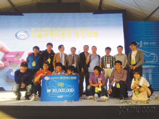 역시 힘든 점이라고하면 자동차라는 특성상 테스트를 하기위해서는 넓은 공간을 필요로 했기 때문에 소운동장 음대주차장등 온갖 빈 도로를 찾아 헤매는 경우가 많았습니다. 그래서 교외로 차량을 옮겨 테스트하는 날이 많았고 야외에서 밤을 새는 날도 많았습니다. 그중에서도 가장 이번 대회를 준비하면서 큰 사고는 가장 핵심으로 쓰던 장비가 대회를 3주 앞둔 상황에서 고장이 나서 팀원모두를 당황하게 했지만 대회 4일을 앞두고 다른 센서로 교체작업을 완료하여 하여 대회준비를 마무리했던 일이 생각납니다.