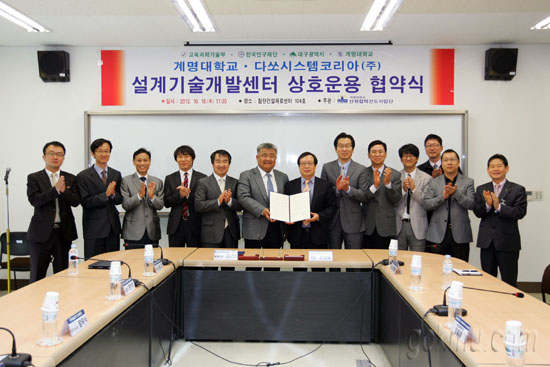 우리학교 방대욱(컴퓨터공학·교수) LINC사업단장과 다쏘시스템코리아(주) 김근행 총괄상무 등 양 기관 주요 관계자들이 참석한 가운데 맞춤형 기업지원서비스를 위한 설계개발기술지원센터의 구축 및 운영과 지역기업 3D 기술 발전을 위한 공동투자 및 기술지원 확대, 핵심인령 양성 및 지역기업의 3D 기술자문을 위해 상호 협력하기로 약속했다.