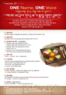 ● 제1회 외국어 한식 표기 통일 방안 공모전기간 : 2012-11-01 ~ 2012-12-05