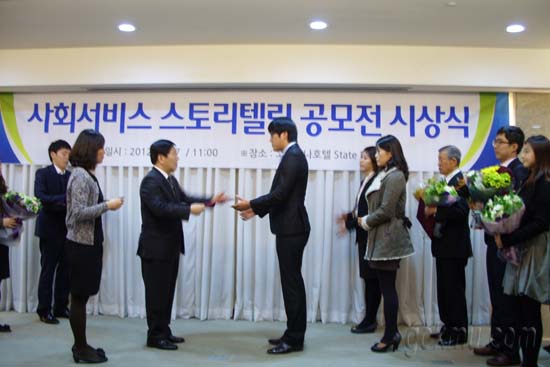 사회서비스 스토리텔링 공모전’ 시상식에서 우리학교 지역사회서비스투자사업단 이성만 지원이 대리수상하고 있다