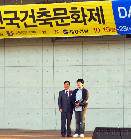 우리학교 임훈(건축과·5)씨가 (사)한국건축가협회에서 주최하고 문화체육관광부, 대한건축학회, 대한건축사협회가 후원한 ‘2012 대한민국 건축대전’에서 우수상을 차지하여 2백만원의 장학금과 건축 신인으로서의 명예를 거머쥐게 되었다.