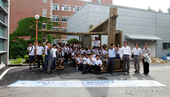 캐나다우드 워크숍은 지난 6월 25일부터 7월 6일까지 디자인 진행 및 설계 4일, 목조건축이론 및 시공교육 1일, 시공 3일이라는 짧은 기간 동안 밀도 있게 진행됐습니다. 총 4개 팀으로 나누어 설계된 부분들을 시공하고, 조별로 제작한 부분들을 마지막에 결합하는 방식으로 시공이 진행됐습니다. 이번에 처음으로 못질을 하고 나무를 잘라 본 동료들도 있었습니다. 하지만 저희는 그러한 어려움과 7월의 무더운 날씨를 이겨냈습니다. 모두 즐거운 마음으로 서로가 한마음 한뜻이 되었던 지난 5일을 저희는 절대 잊지 못할 것입니다.